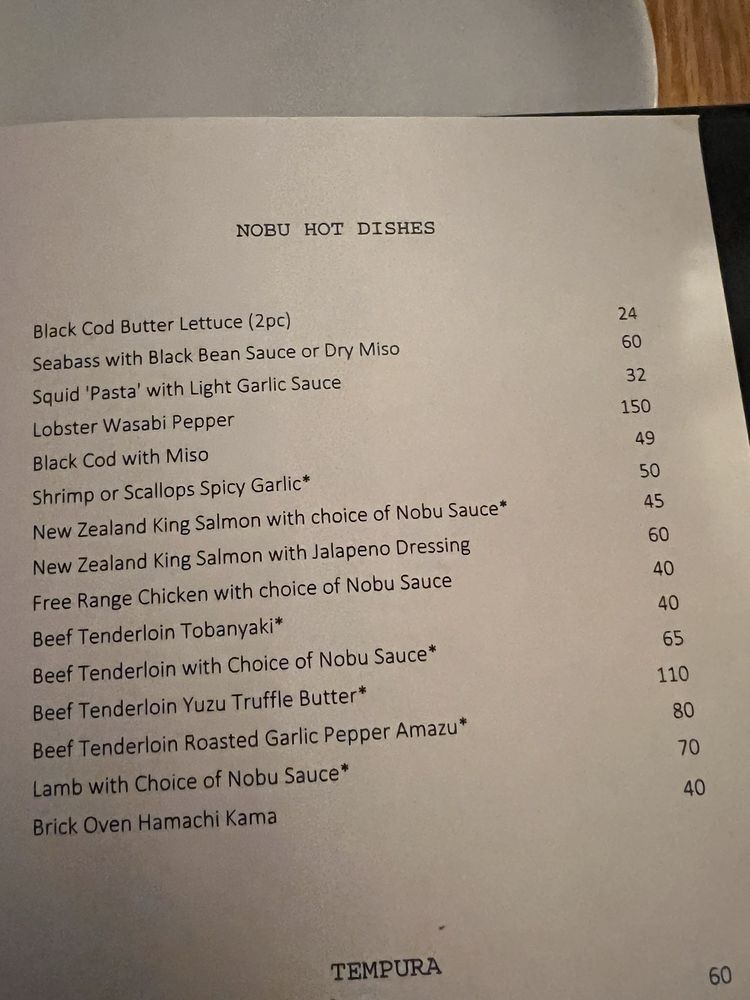 Welcome to Nobu at Paris Hotel, a culinary gem nestled in the heart of Las Vegas, where Japanese flavors meet exceptional artistry. The menu is a spectacular showcase of signature dishes, with highlights like Seabass Tempura and Rock Shrimp Tempura. Each dish is thoughtfully crafted, offering a delightful contrast of textures and flavors.